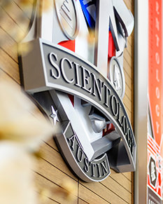 La próxima Iglesia Ideal de Scientology en Texas se encuentra adyacente a la Universidad de Texas. El edificio de más de 4800 metros cuadrados está en la calle social principal de Austin, famosamente conocida como The Drag, donde 70 000 peatones pasan cada día.